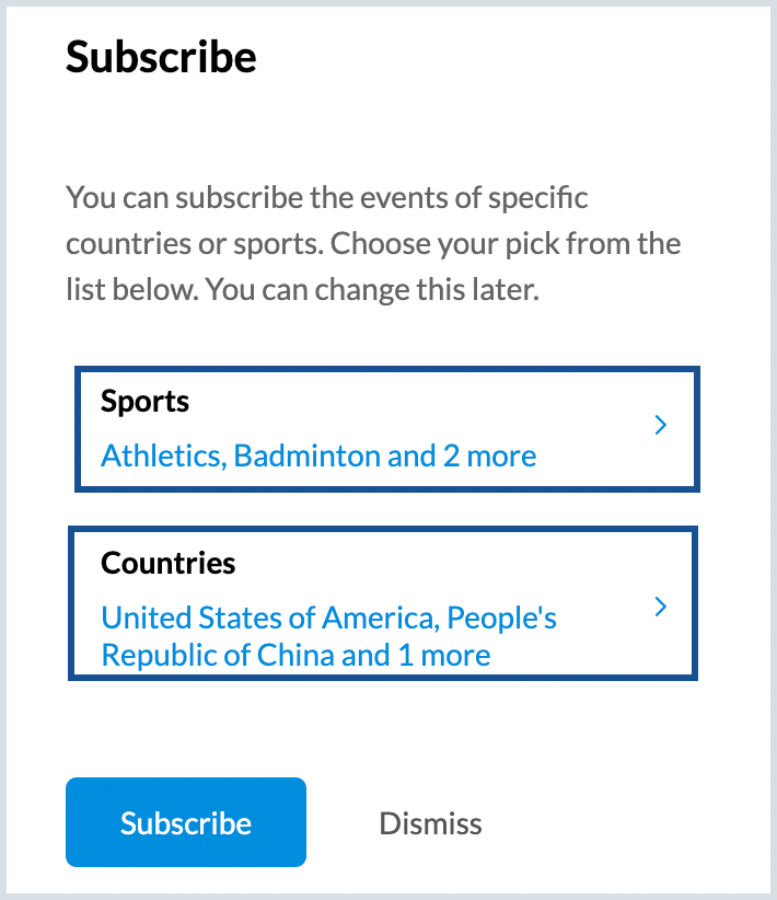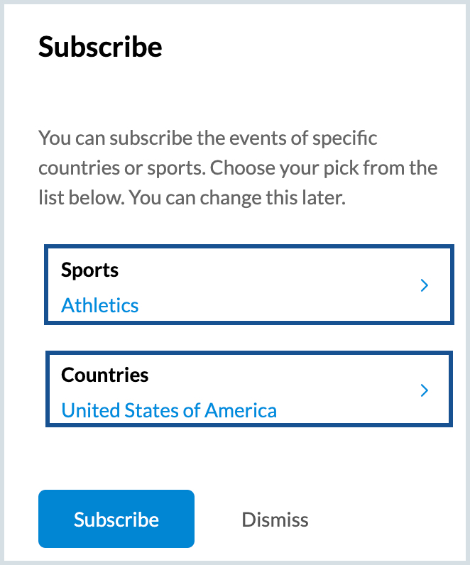 3. Click on Sports and Countries to pick the sports and countries of choice.