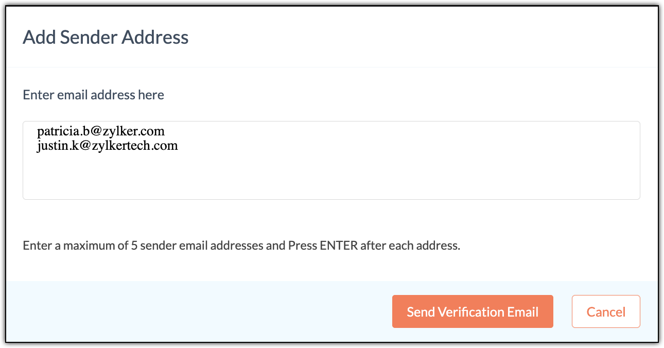 5. Type the email address in the box. You can enter up to 5 sender email addresses.
