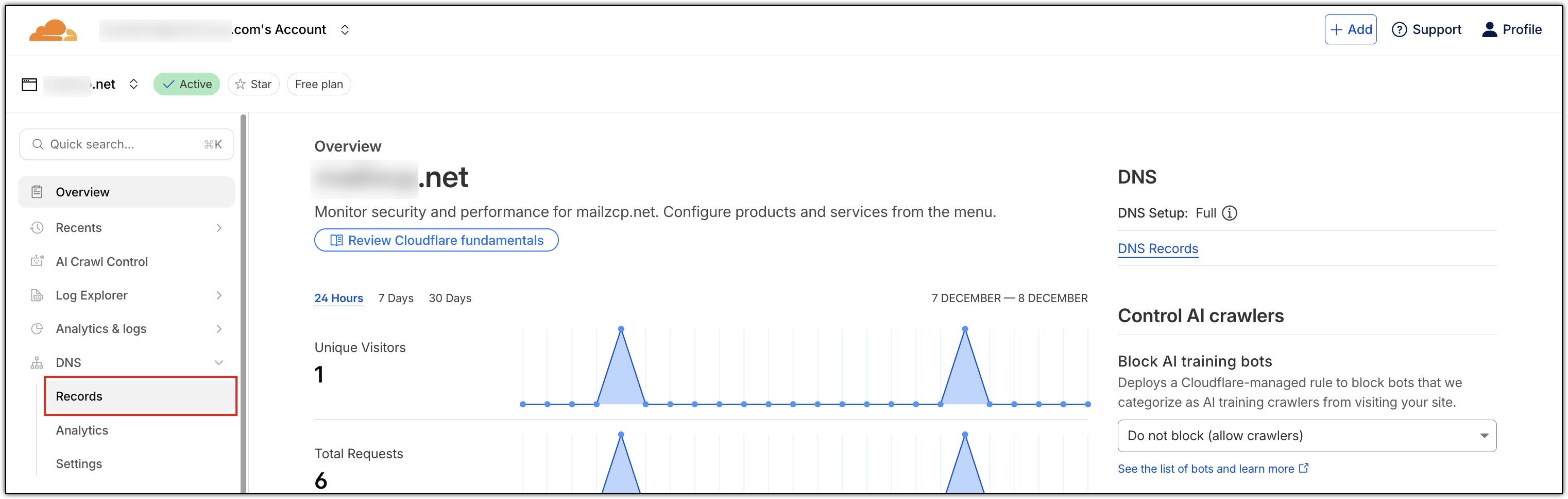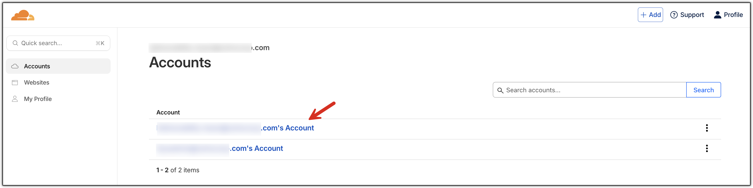 - Click the appropriate Cloudflare account for the domain where you will add records.