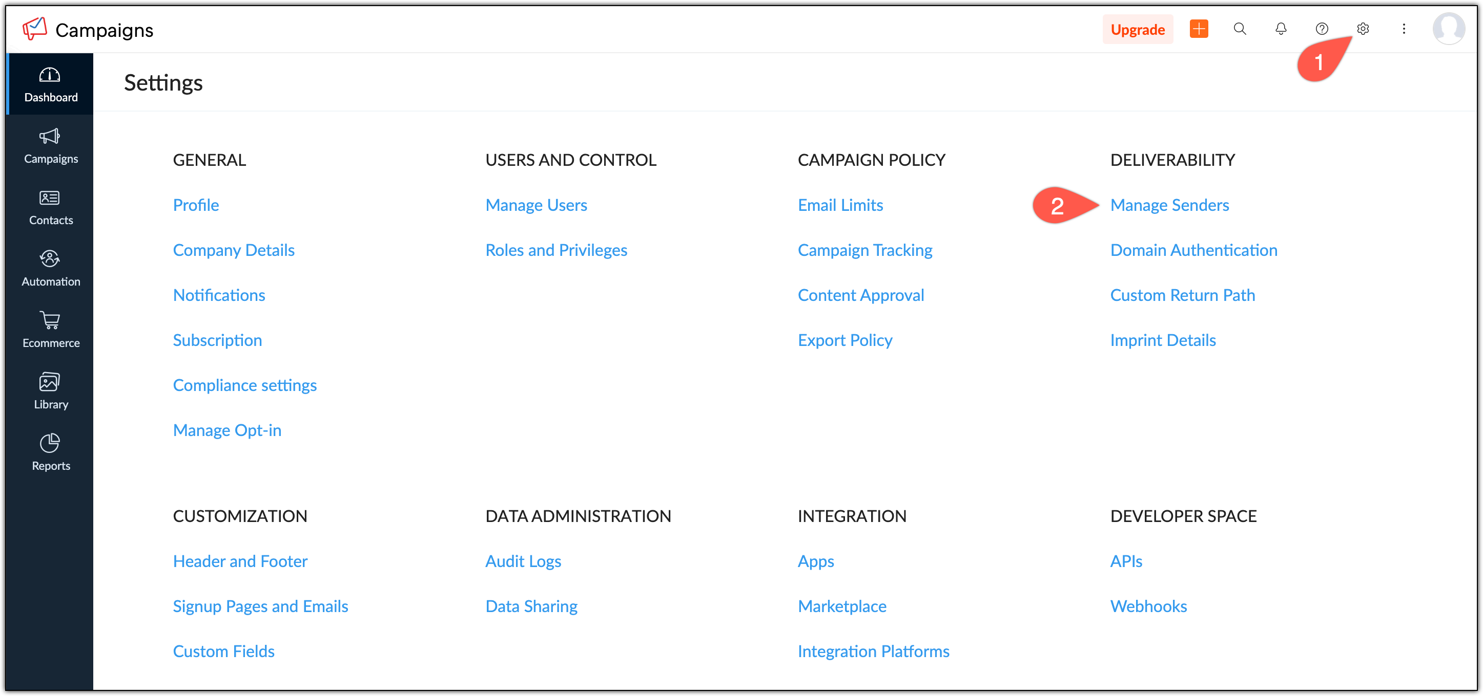 At Zoho Campaigns, we strongly urge you to authenticate your domain by implementing SPF and DKIM.