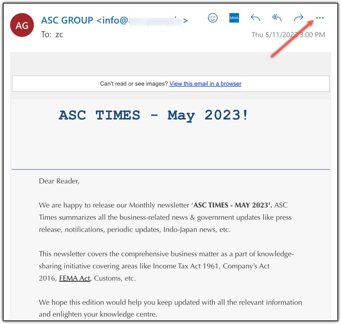3. Press the Alt Key and simultaneously click the left mouse button anywhere in your email window.