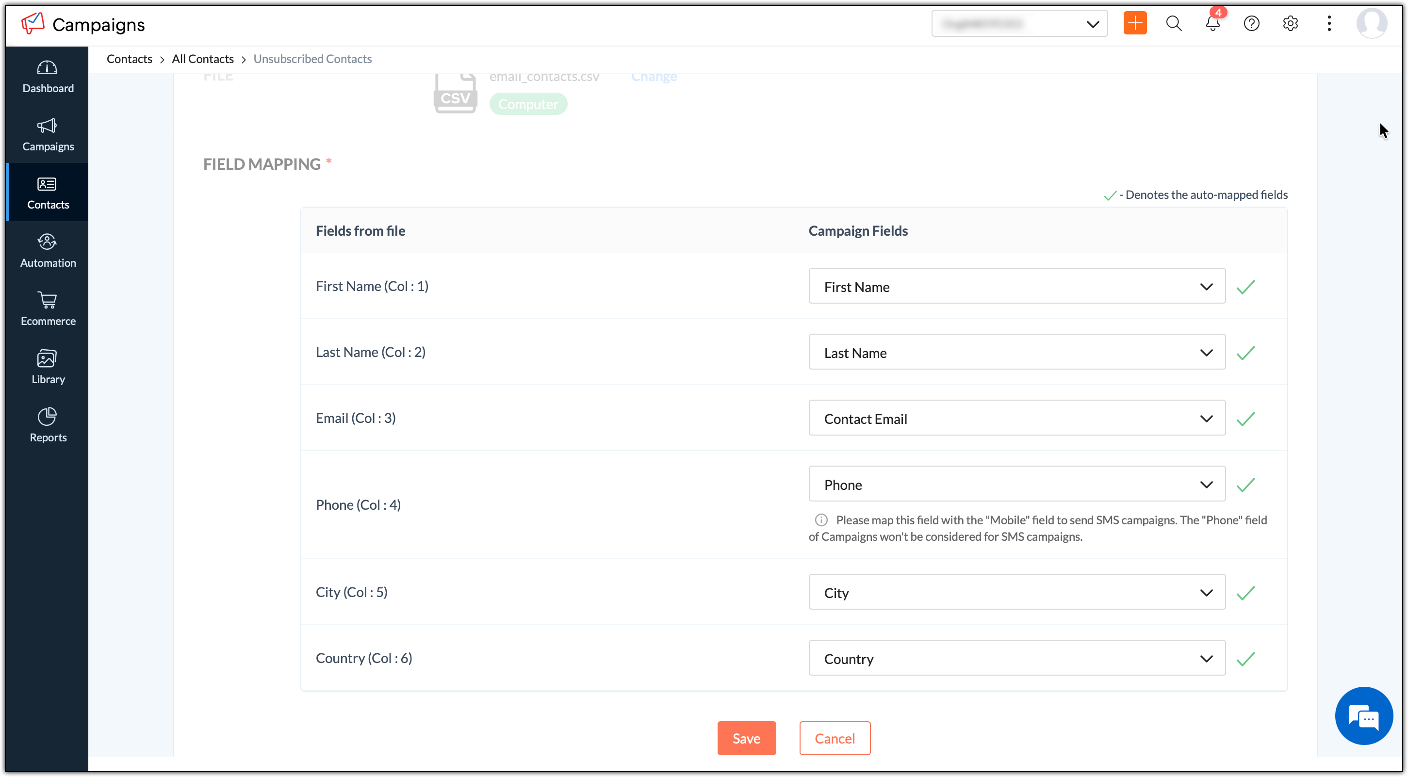 Map your fields in the document with respective Zoho Campaigns's fields where you will store your contacts' information to.