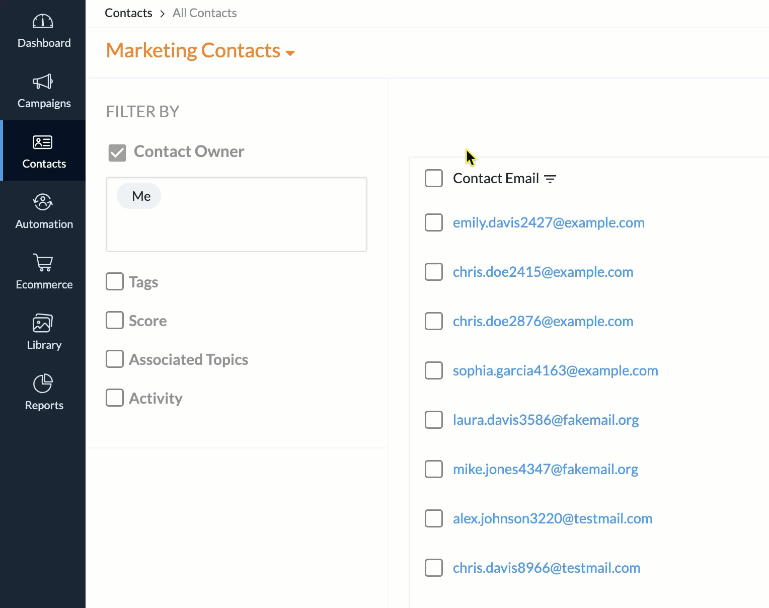 You can filter the Contact Email field in the All Contacts page based on various criteria. To do this: