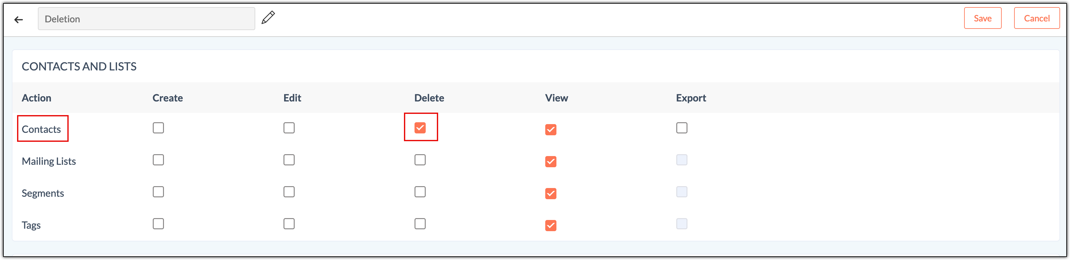 It can be because of the role you're assigned. If you're assigned the Editor or the Viewer role, you can't delete data from your Zoho Campaigns organization. These roles, being system default roles, can't be modified. Hence, if you wish to have the delete permission, you need to request your admin to either provide you with the Manager role or create a custom role and provide the Delete permission for that role.