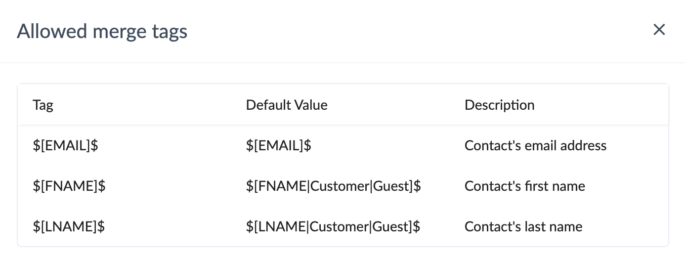 4. You can use Merge tags to find out which contact performed an unsubscribe action. The type of merge tags that can be used are shown in the screenshot below.