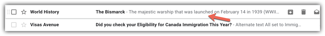 The preheader is the short text that follows the subject line and that can be viewed only in the list view of your inbox. It is designed to support the subject line in conveying the essence of an email. A good preheader should act as a second subject line and convince your contacts to open the email.