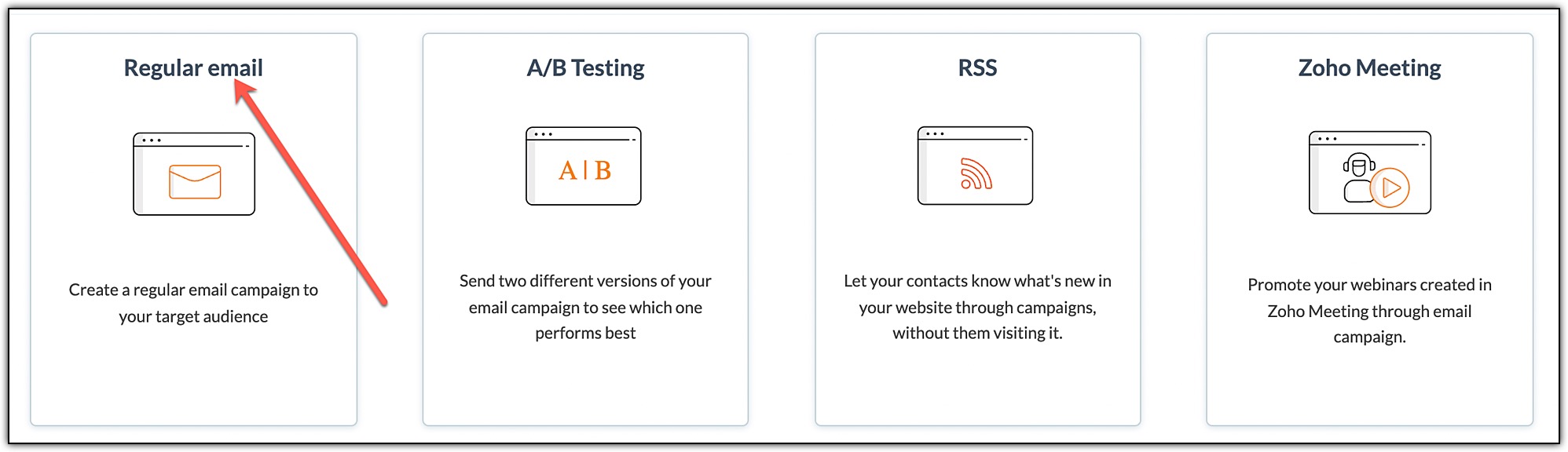 2. Click Create Campaign on the top-right and select Regular email.