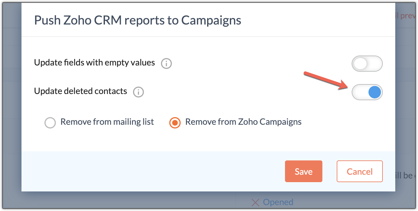 This is not applicable for users who have migrated to the new Zoho CRM integration model as we remove deleted records by default in this model.