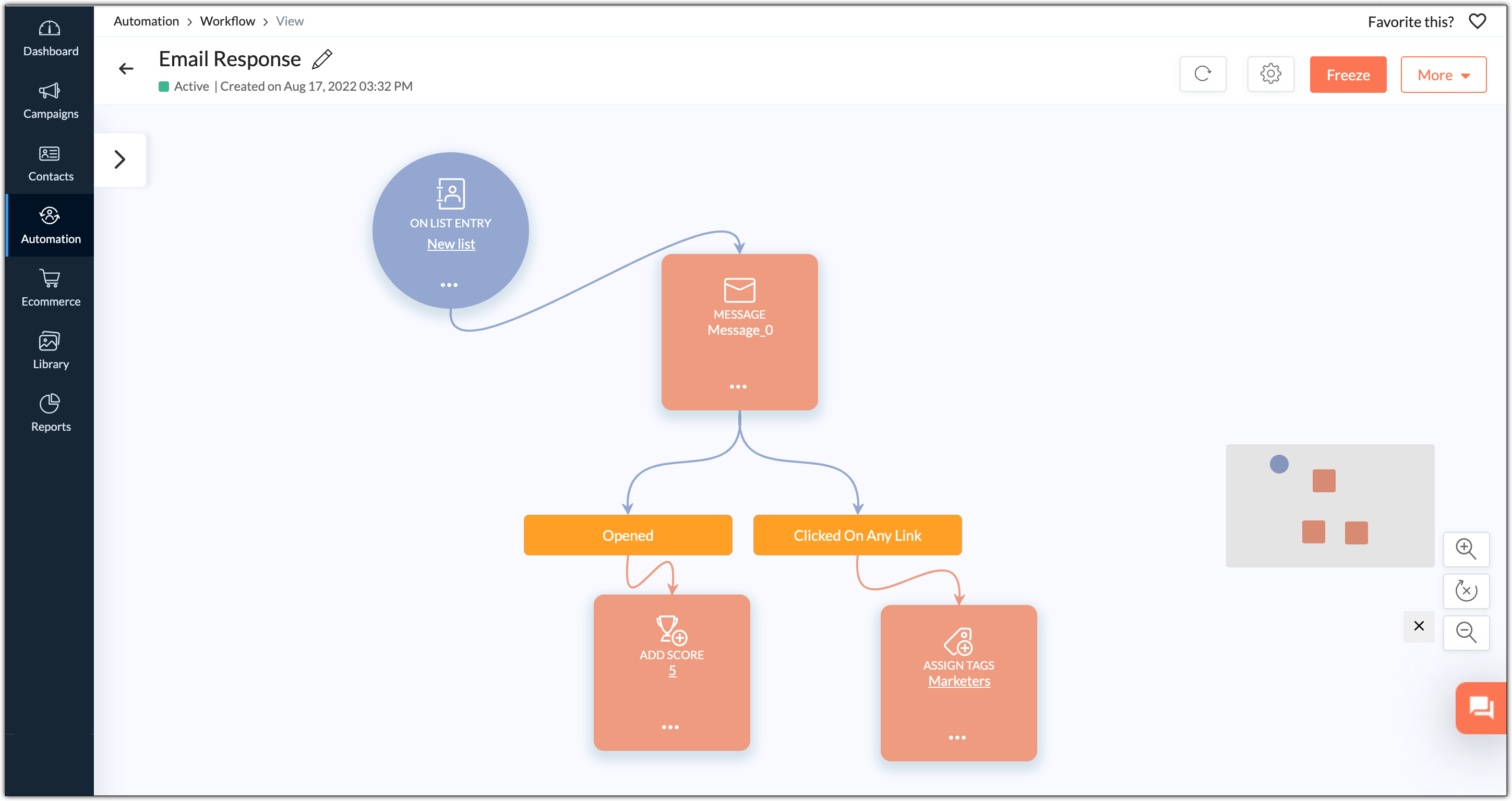 You have an active workflow that sends an email to the contacts entering the selected list. You've configured the email response for contacts who've received the email to be assigned with a tag and for contacts who've opened the email, a score will be added to them.