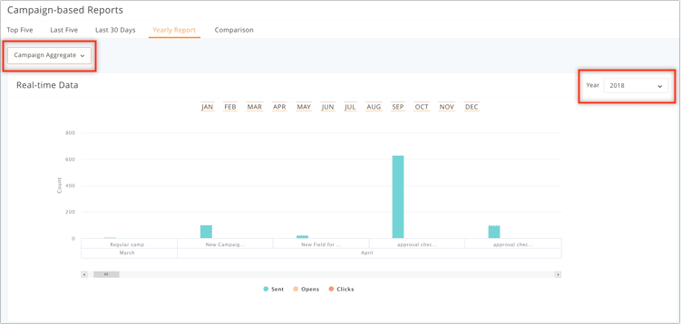 Be it Campaigns based reports or List based reports, you can view it's yearly report by following these steps: