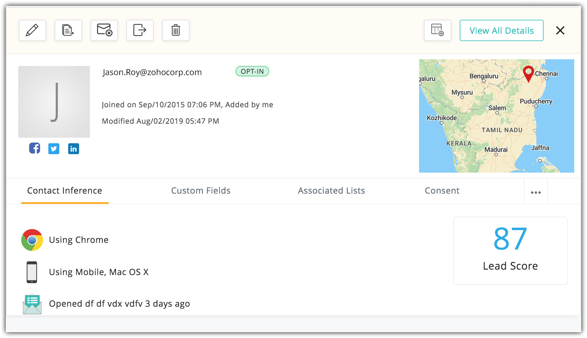 When images are downloaded and links are checked for malware in the mailbox provider's proxy server, the location of the mailbox provider's proxy server is saved as the email recipient's location in your Zoho Campaigns database.