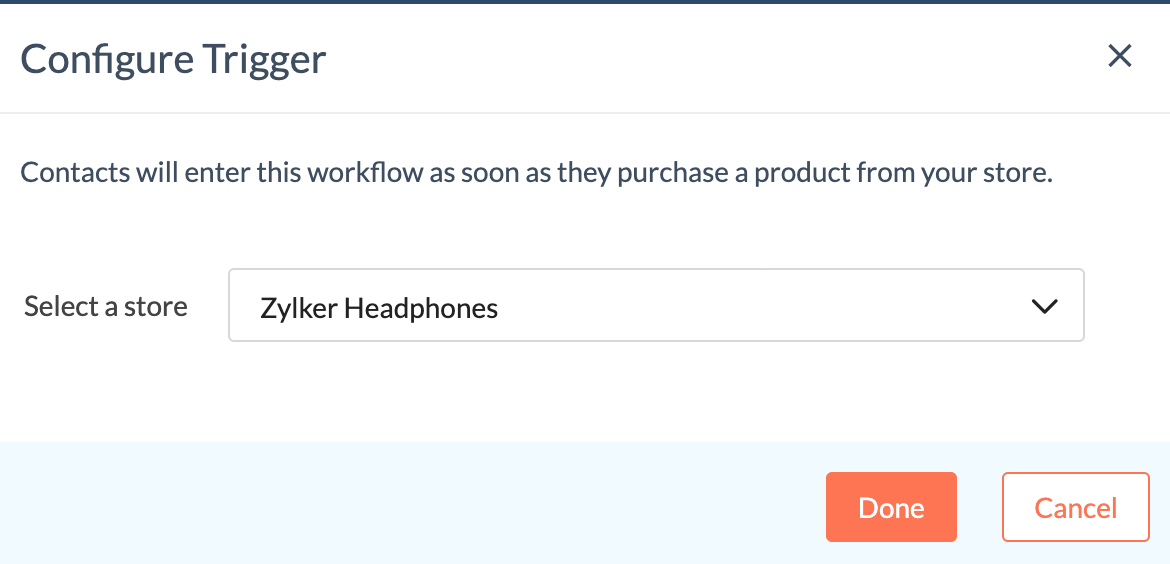 - Start by configuring the purchase follow-up trigger so the workflow begins after a customer completes a purchase.