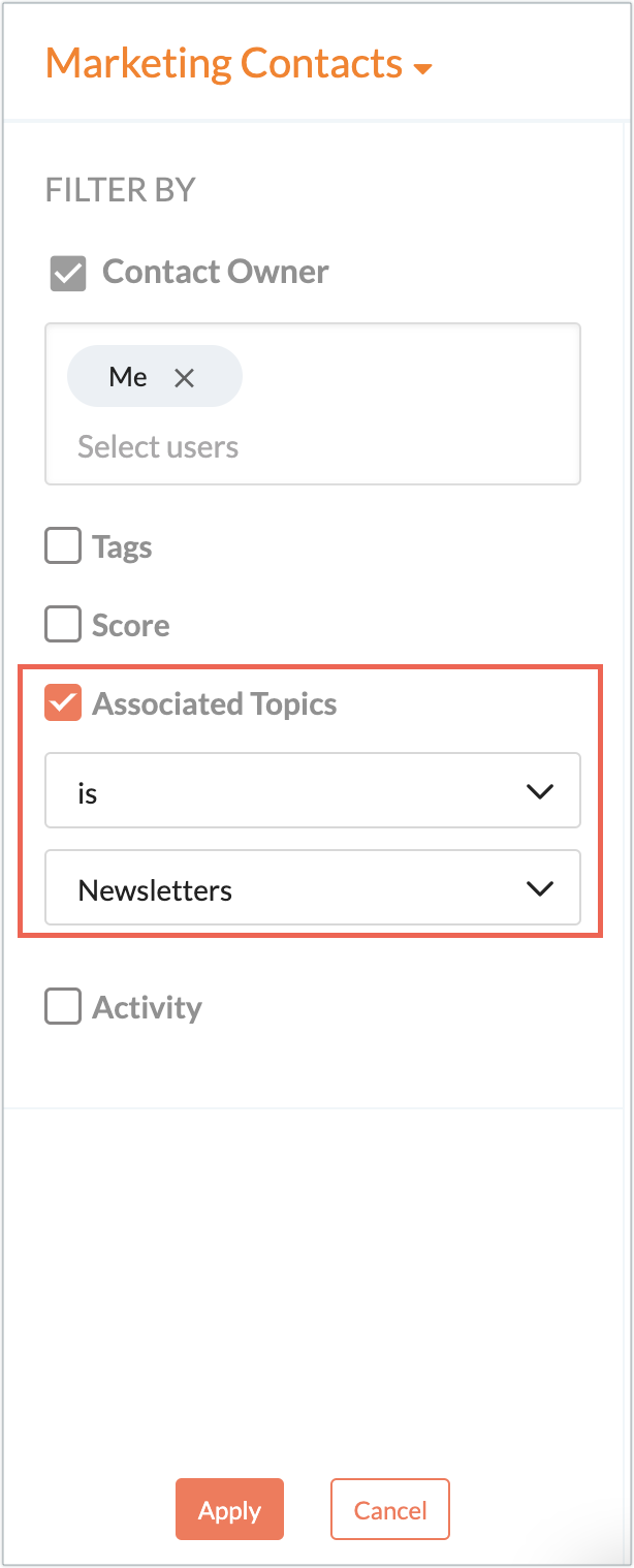 Topics is a feature that helps you organize your contacts according to their preferences, so you can send them email campaigns relevant to their interests. You can