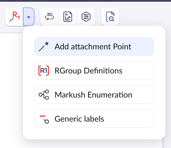 - Insert variable R-groups: Select the Radical Label tool to place R-groups at positions where substituents may vary. Use text labels to define each R-group (e.g.R1,R2).