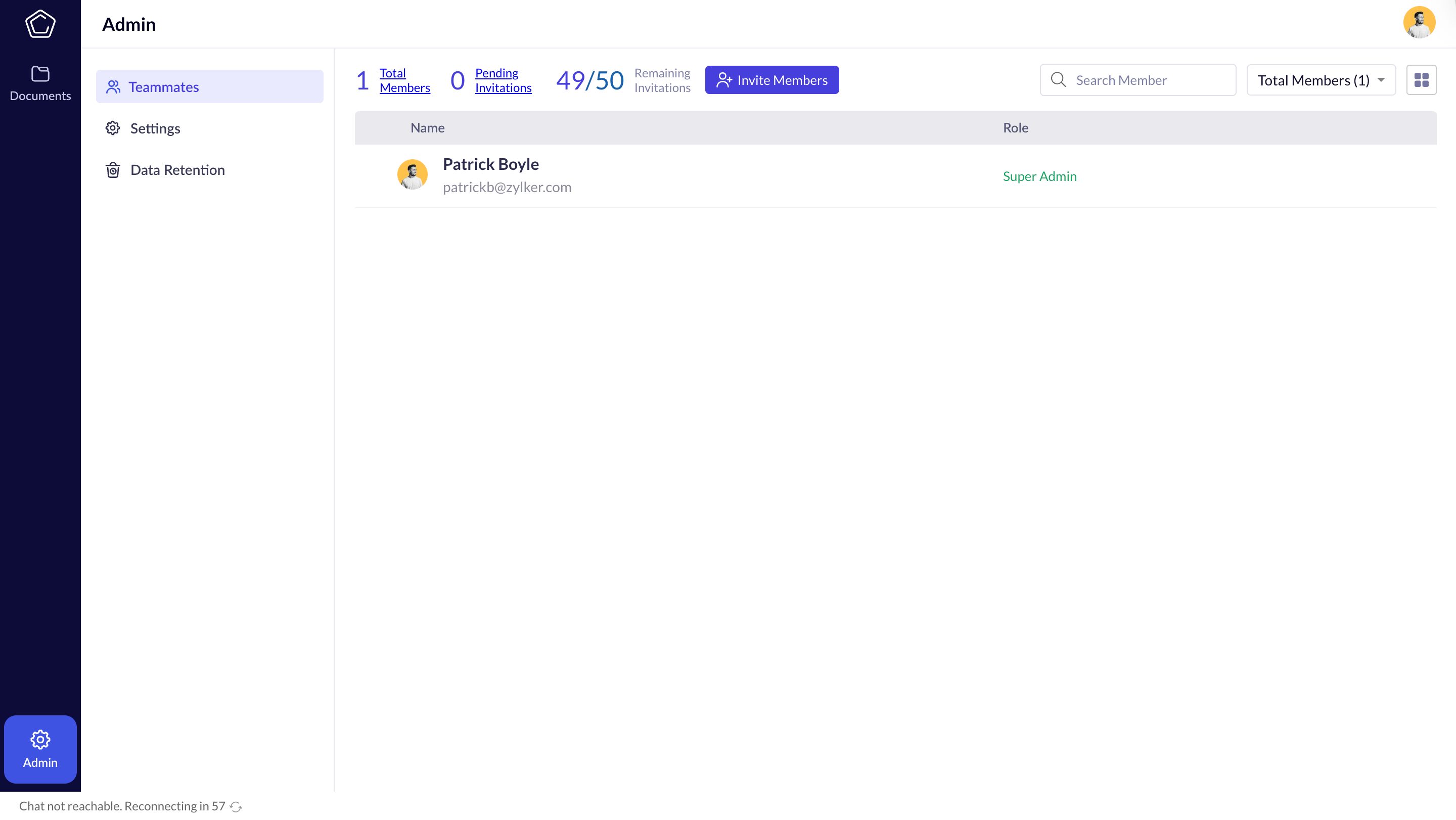 The first time you sign in, you have to set up your workspace by creating or joining a team with an invite. You can start drawing immediately and add members later if you want others to collaborate.