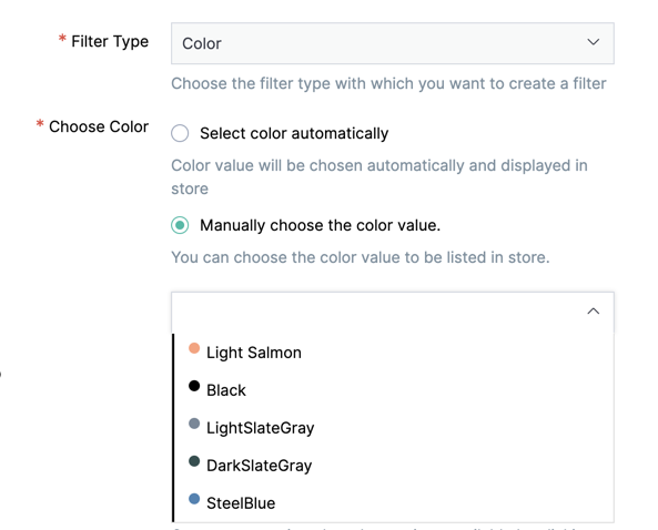 Colors need to be available within the store to set it up as a filter.