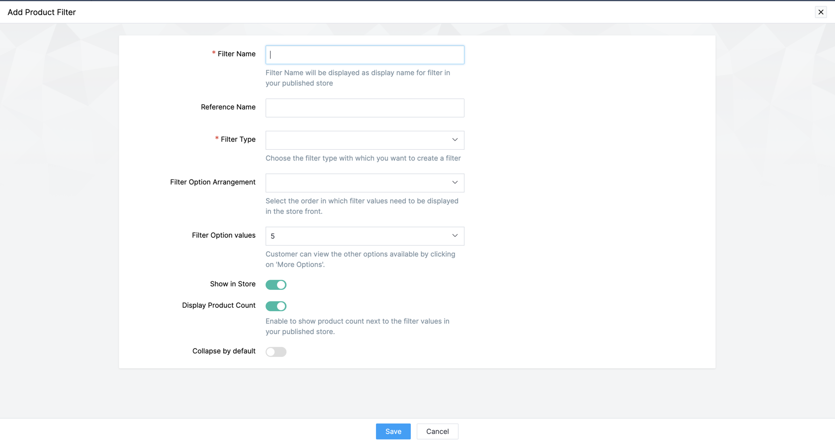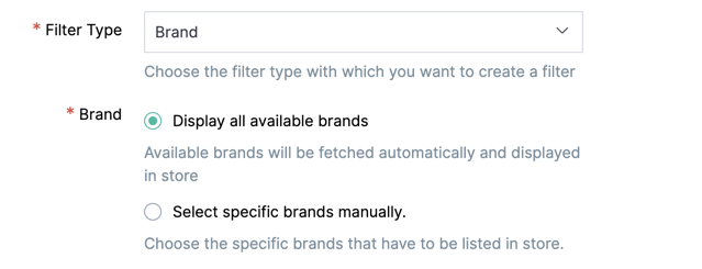 Filters can be created based on the brands available in the store. Choose between displaying all brands and manually selected brands.