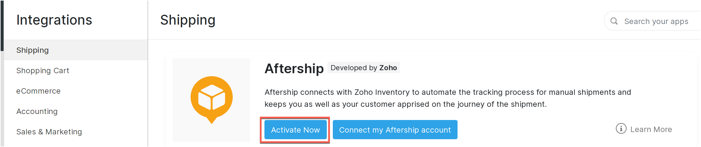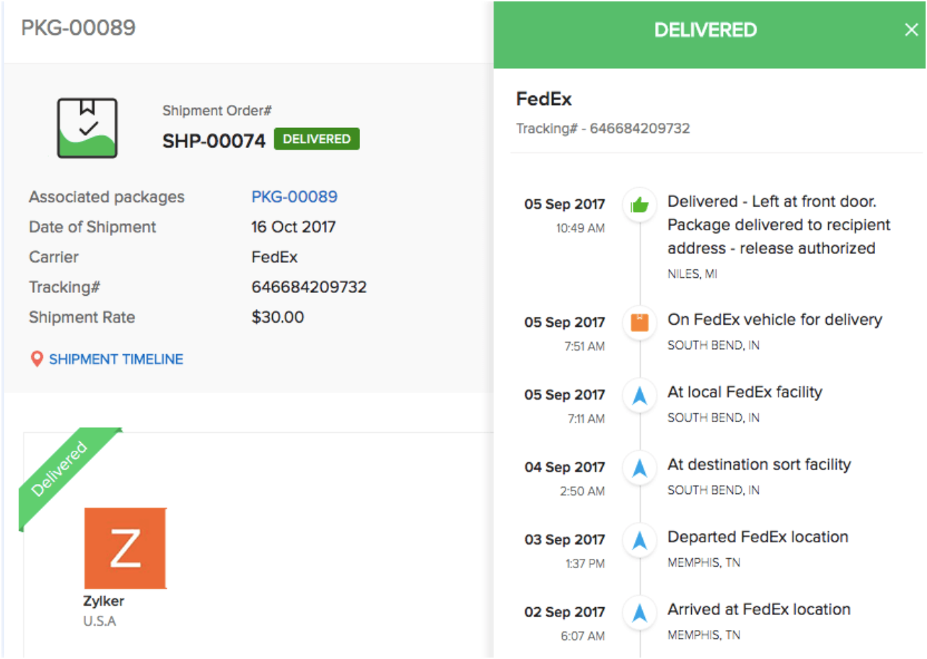 When the shipment is delivered, AfterShip automatically marks the status as Delivered in Zoho Inventory.
