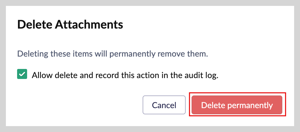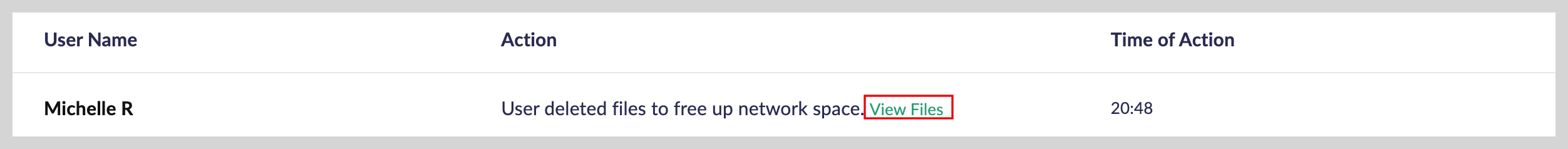 All file deletion and download actions performed by admins are recorded in the Audit Logs. Click View Files next to an entry to see which file was deleted or downloaded.Select Delete Permanently to confirm action.