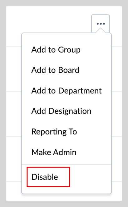 When a user is no longer working with you, you will want to remove their access to your Zoho Connect network. In such cases, you can disable their account to prevent them from signing in to the network while keeping their existing posts, comments, and integrations intact.
