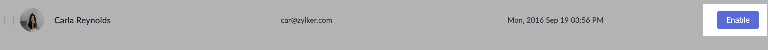 1. From the list of users, click Enable found at the right end of the member's name whose access you'd like to restore.