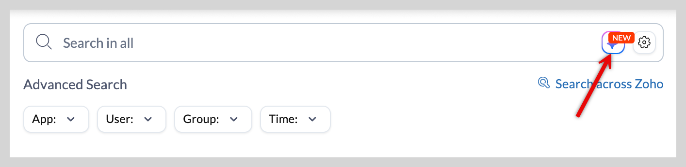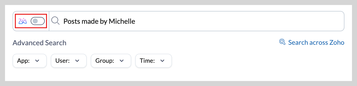 Zia NLP Search, Zoho Connect's NLP (Natural Language Processing) search, helps you find data across your network. Instead of relying on exact keywords or manual filters, this search allows you to type your queries in a natural, conversational style.