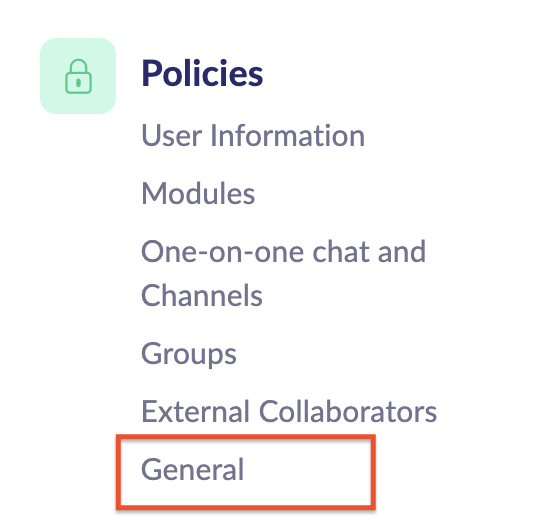1. In the settings page, click General under Policies.