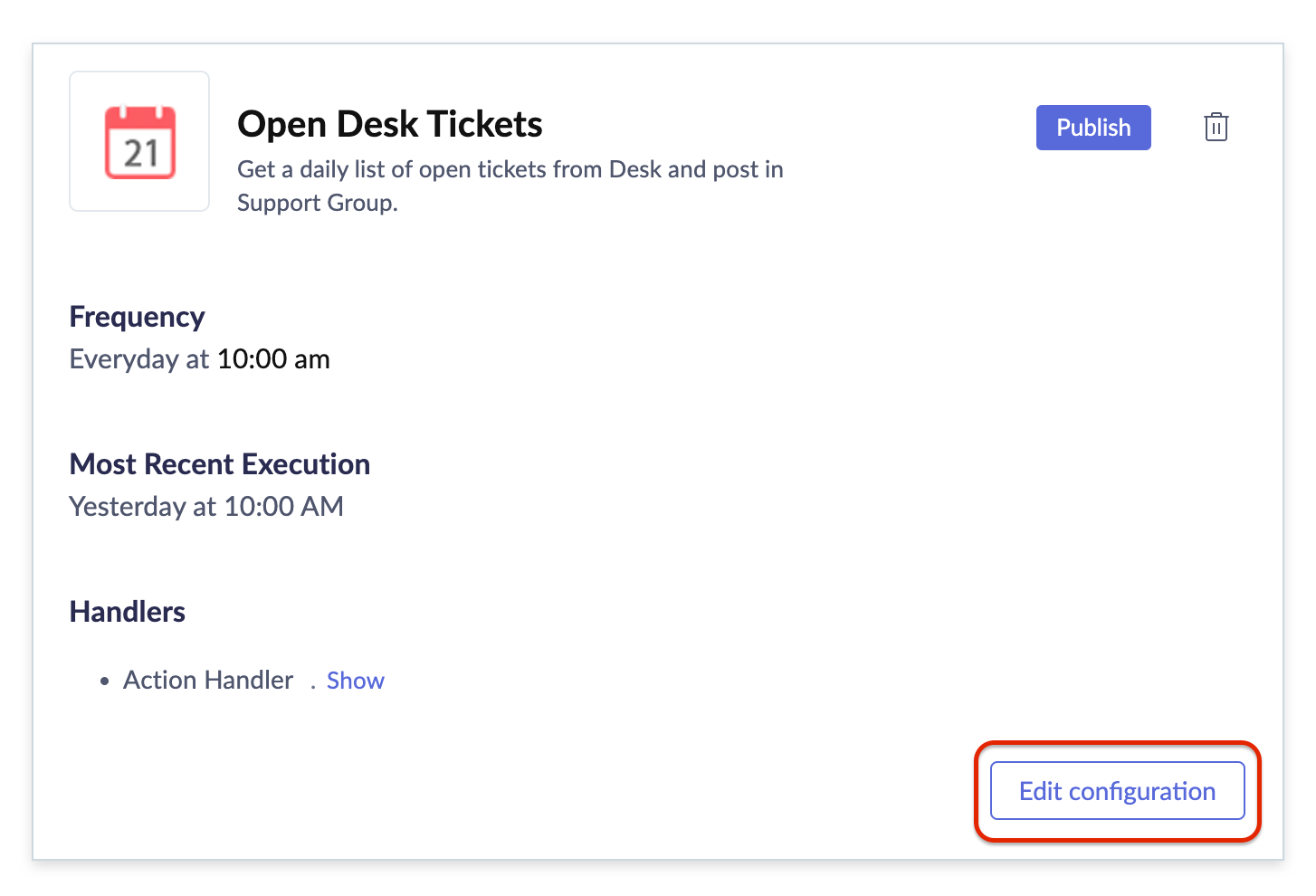 - Get a daily list of open tickets from Zoho Desk and post them within a Zoho Connect group.
