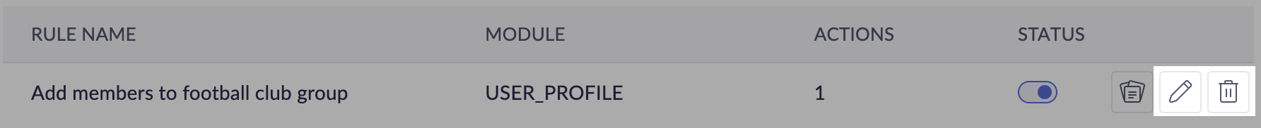 - From the list of configured rules, navigate to the required one and click the edit icon [