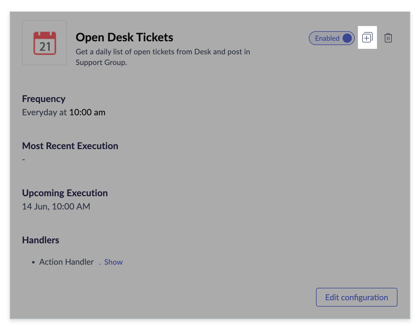 The scheduler configuration will be duplicated, then you can make changes to it.