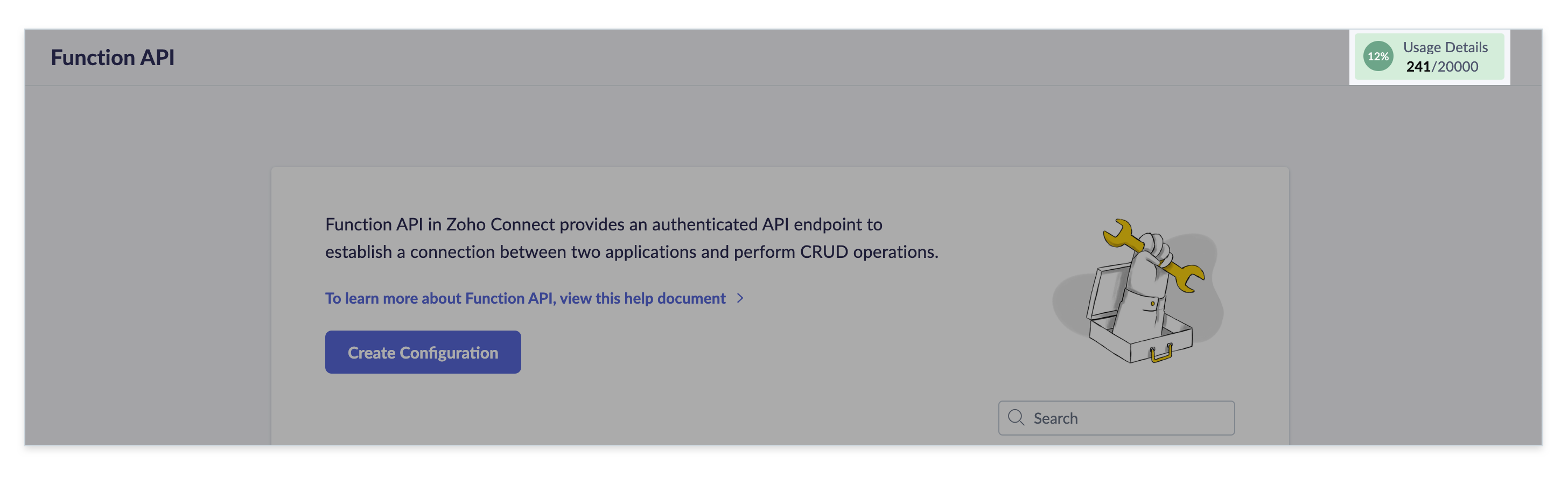 There is a limit on the number of API executions that are made in a network per day. This limit differs with each subscription plan and can be increased by either upgrading to a higher plan or contacting the Zoho Connect support team. Once you have exhausted the maximum limit, all Function APIs in your network will stop working for the rest of the day and, they will resume functioning by 12.00 AM based on your network's data center location.
