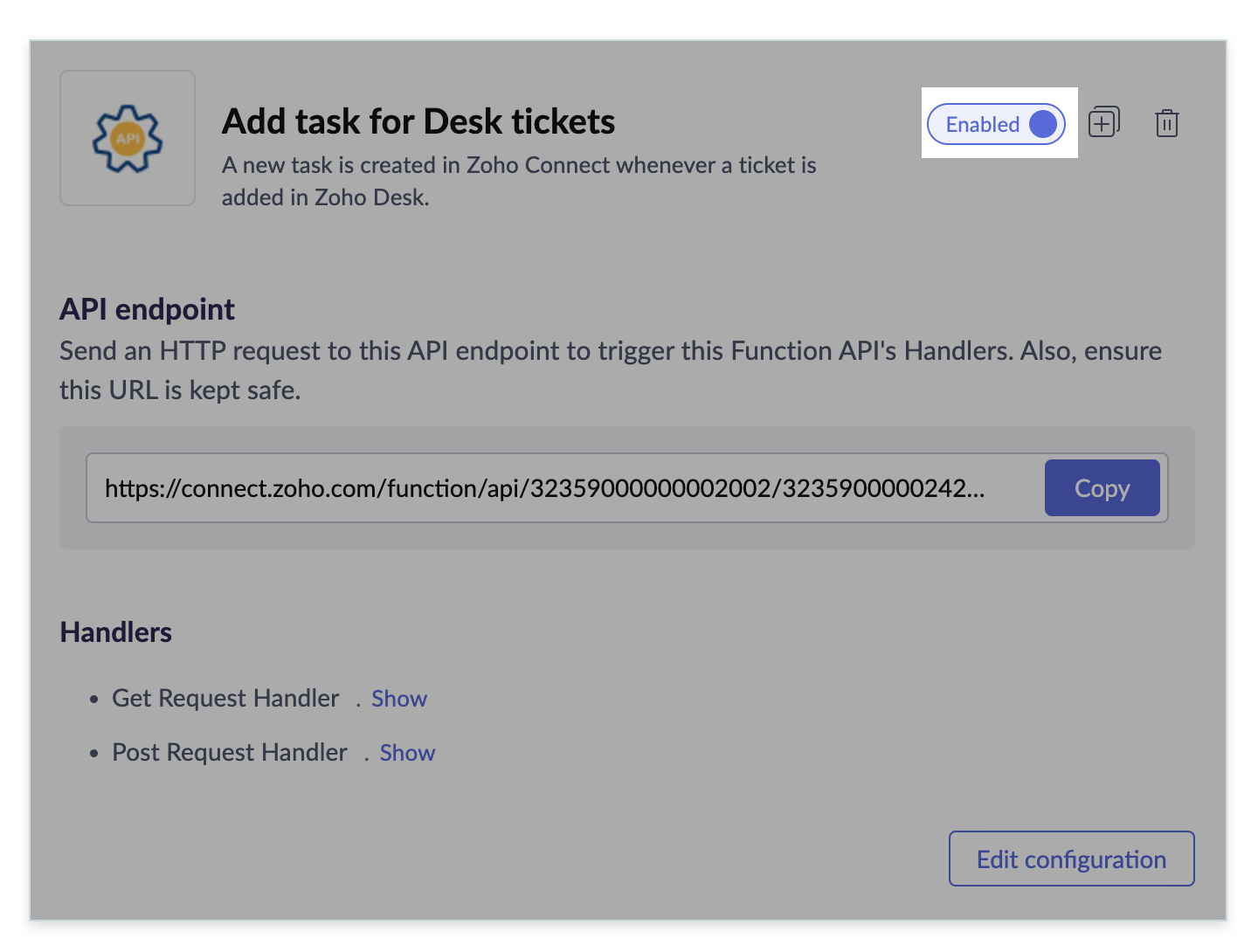 - To disable the configuration, toggle the button in the top-right corner of the Configuration Details pop-up.
