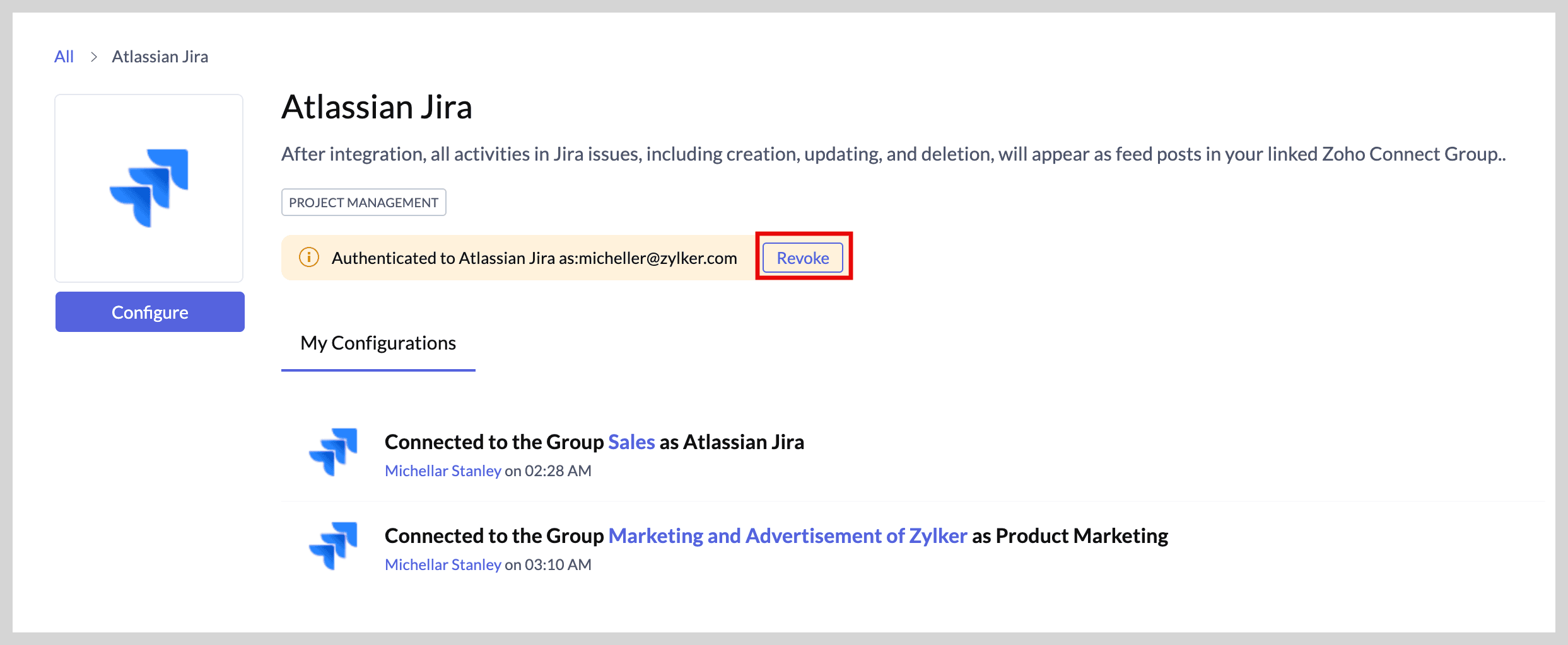 As per Atlassian Jira's policy, you need to reconfigure your Zoho Connect account once a year.