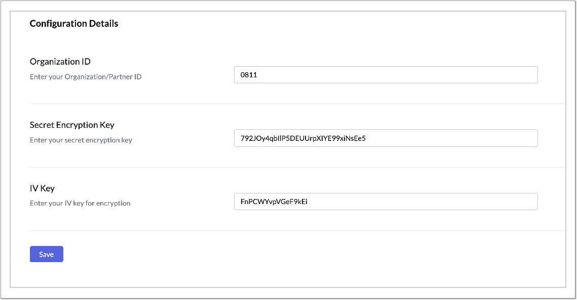 Enter the Medi Assist organization ID, secret encryption key, and IV key.