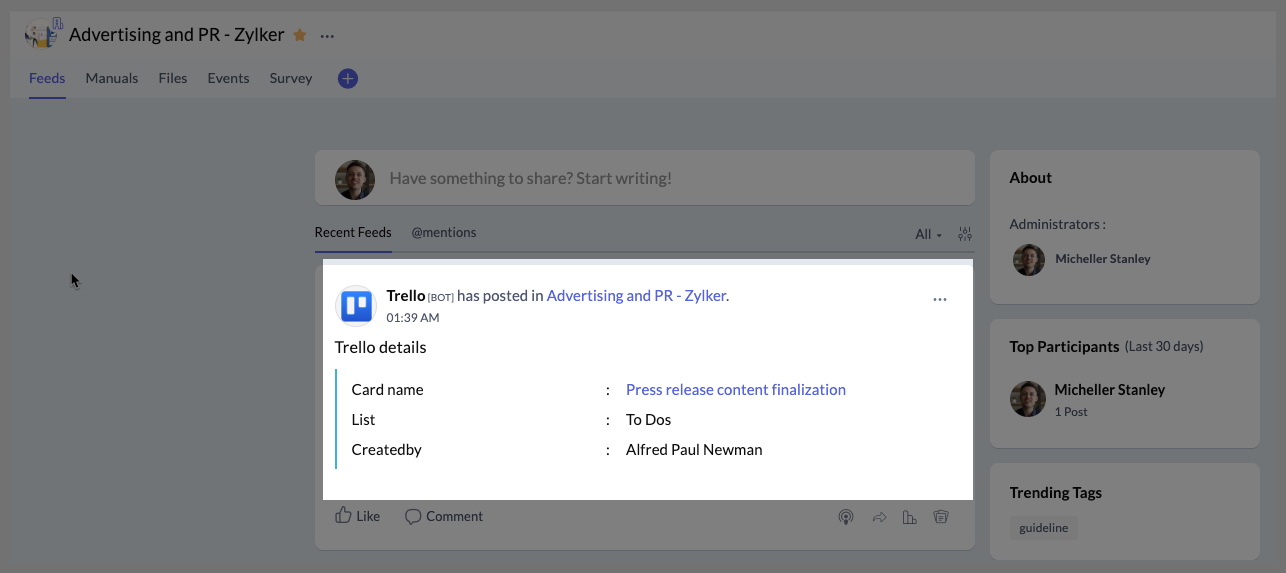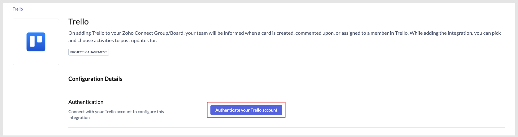 Now that your integration is configured, we'll explain how to integrate Trello with a Zoho Connect group/board and how it will benefit you.