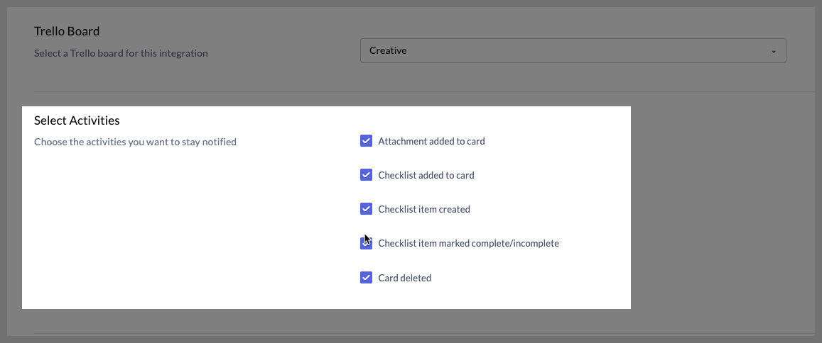 5. Once you're done, you'll be redirected to the Trello integration page. Configure the integration by filling out the details based on your preferences.