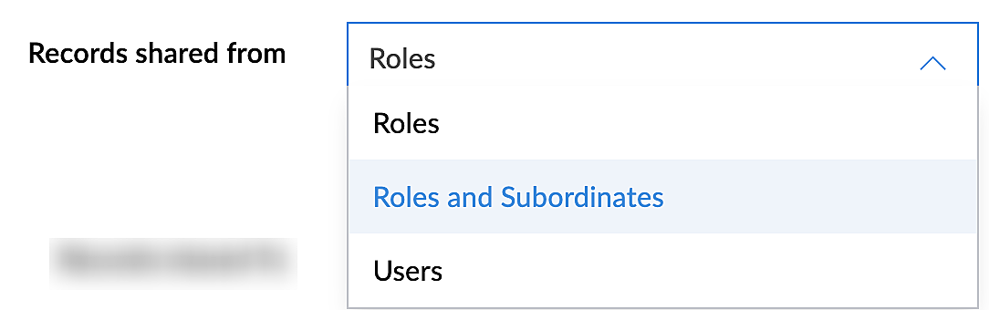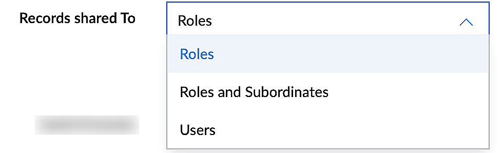 field. All records owned by this particular user/role/role and their subordinates will be shared.