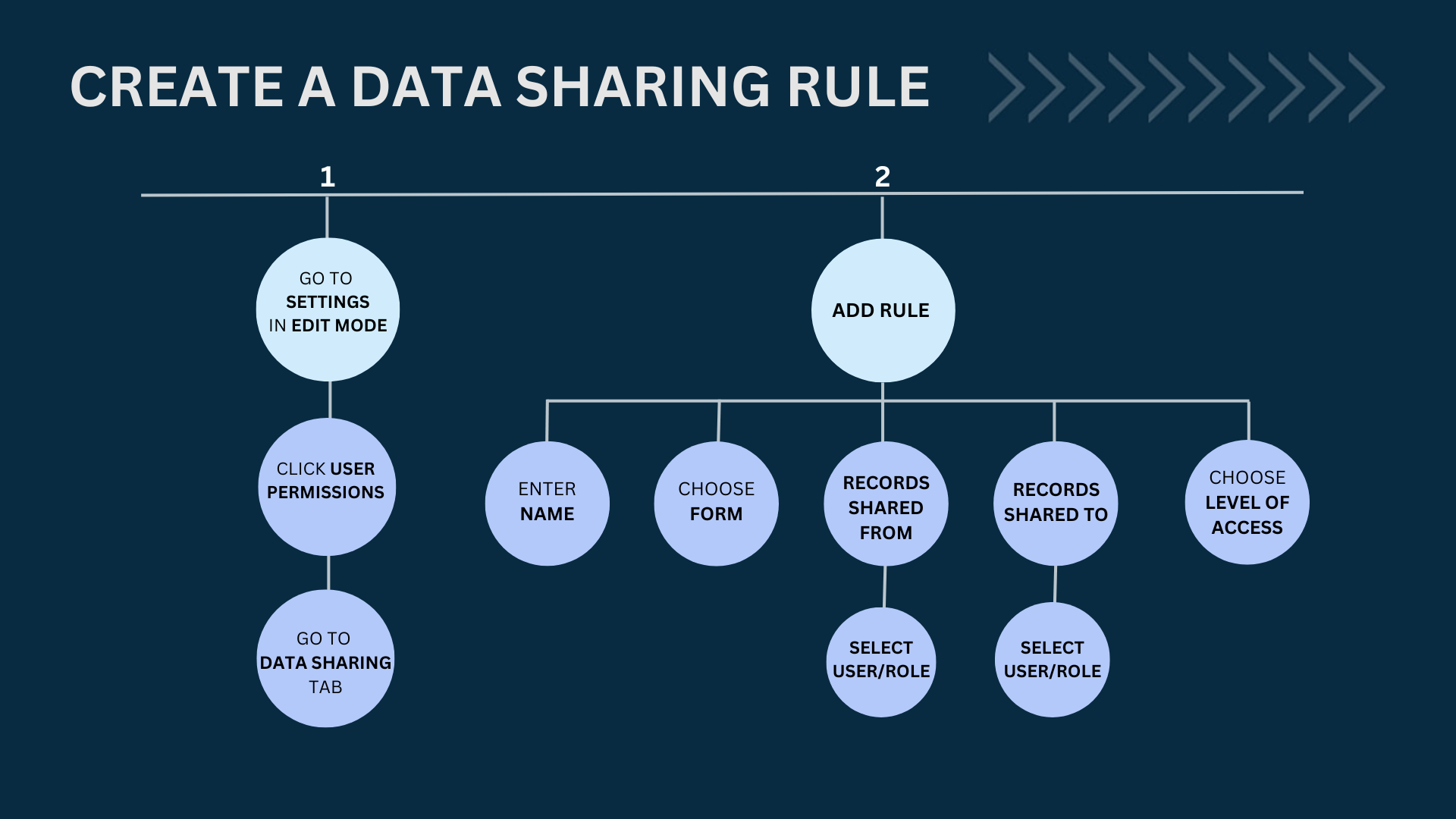Learn to create data sharing rules that allow the flow of application data from one user/role to another.