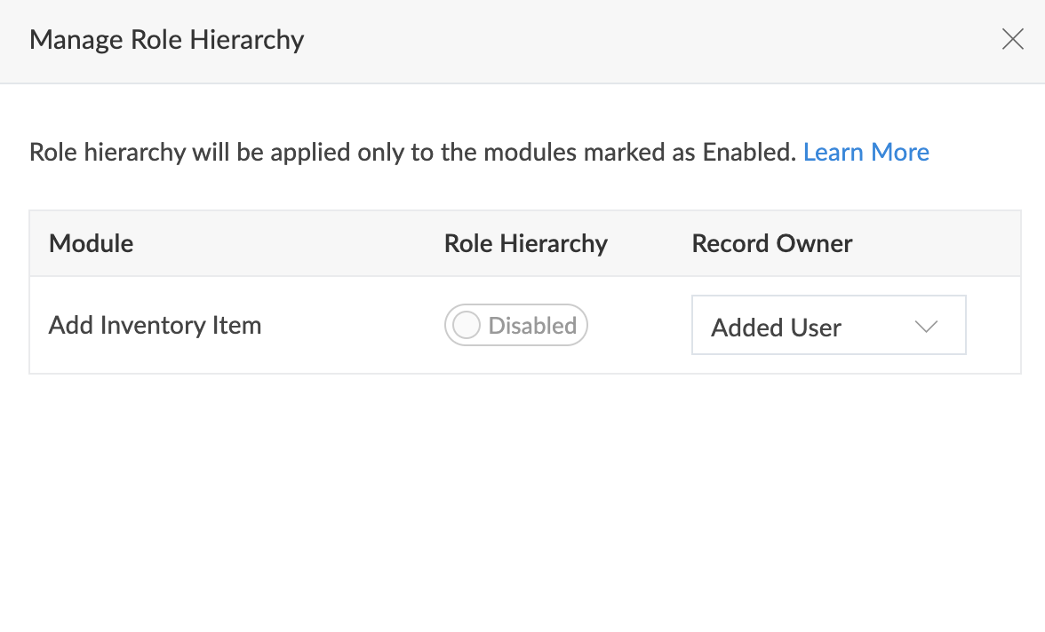 Role hierarchy Disabled