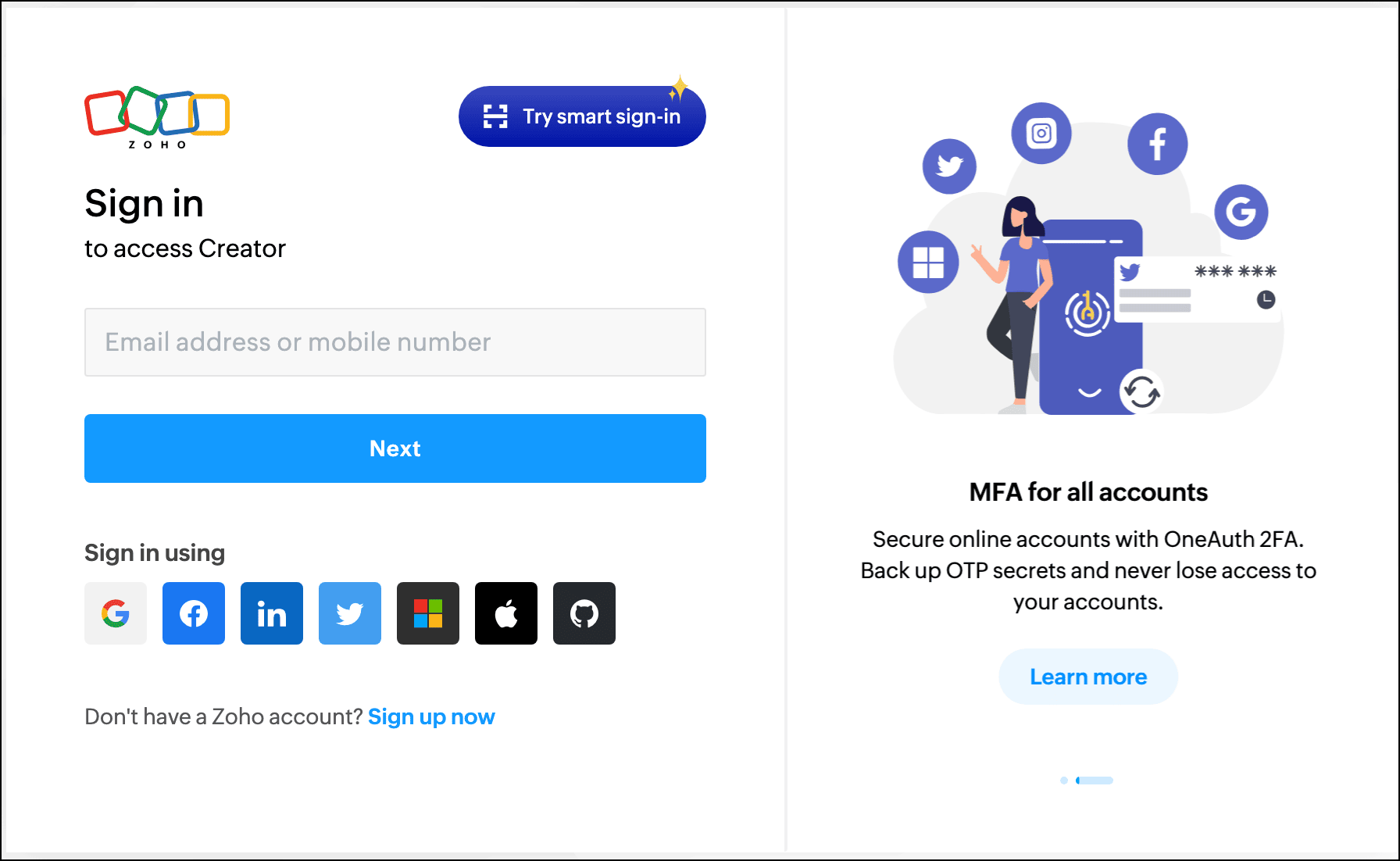 2.4. Smart Sign In with Zoho OneAuth