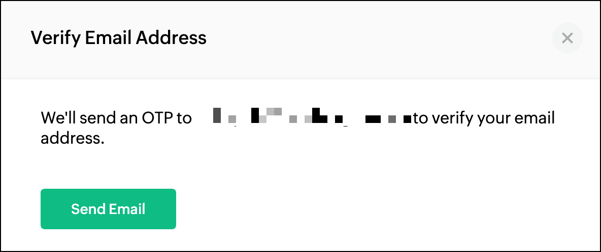 - Click Send Email in the pop-up window to send a verification mail to your email address.