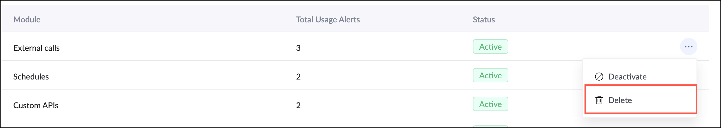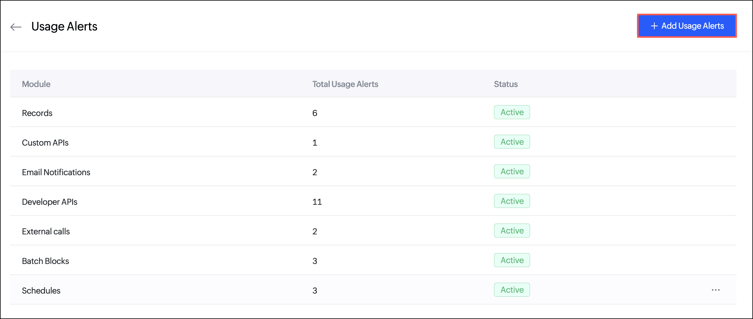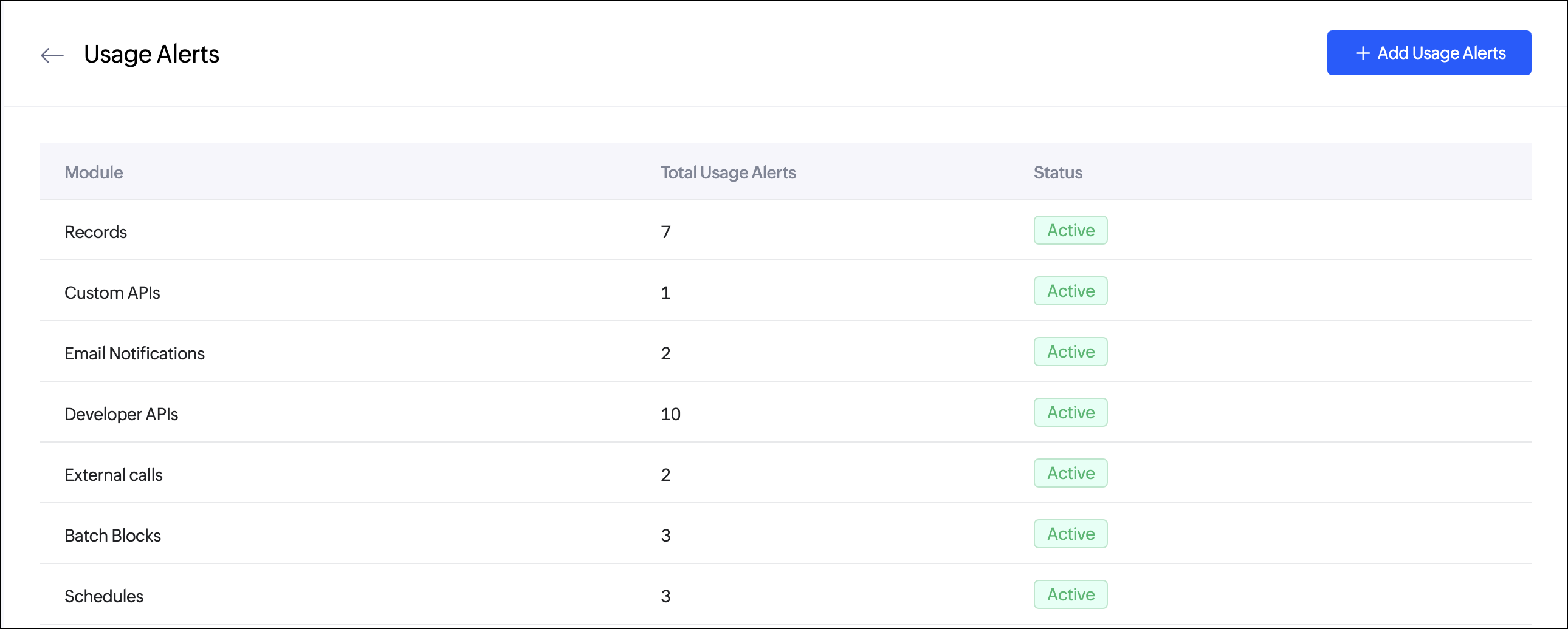 - Status: Indicates whether usage alerts are currently active or inactive.
