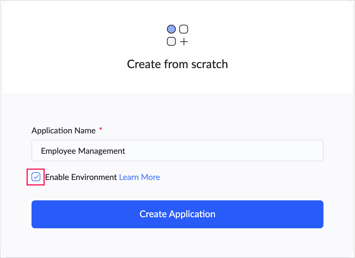 - While creating an application, select the Enable Environments checkbox.