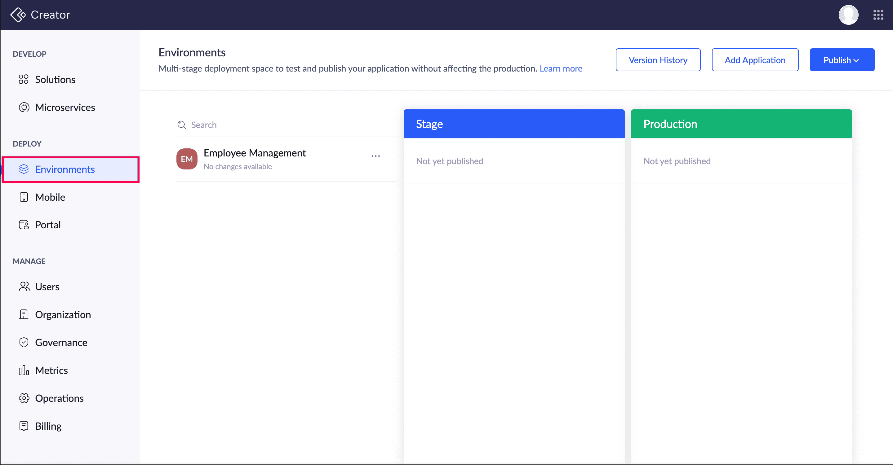 Environments in Zoho Creator serves as an SDLC (Software Development Life Cycle) framework within Creator, providing a structured approach to developing, testing, and deploying application changes efficiently. Before adding the application to the environments, make sure to check out everything you need to know about environments and its limitations.