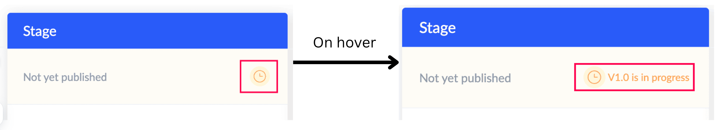 Publish changes reverted | This status appears when the publish process completes but encounters issues that trigger a rollback, restoring the environment to its previous stable state. For example, If version V2.0 is currently live in production, and version V3.0 is published from stage to production, but an error occurs after publishing, the system will automatically roll back the production app from V3.0 to V2.0. |
