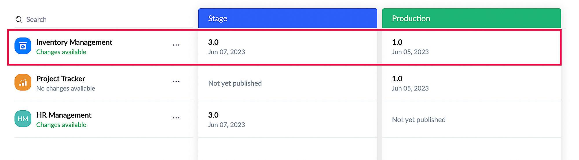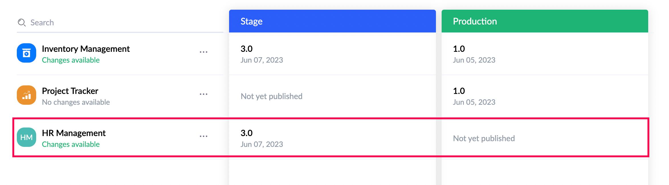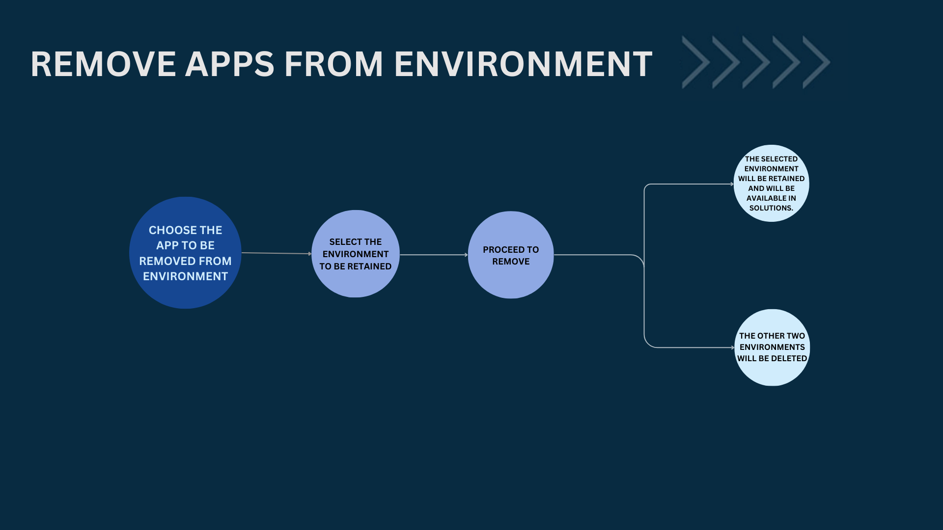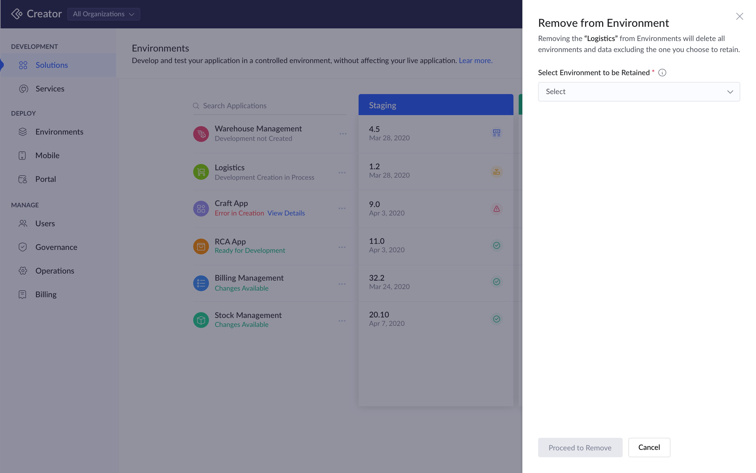 In the first column, navigate to the application which you want to remove. Click the meatball menu(three dots) present next to it and click the Remove environment