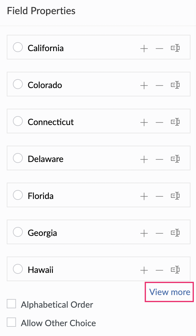 - Hover on a choice from the set. The trash can icon will appear. Click the trash icon if you do not want that choice to be added to your field.