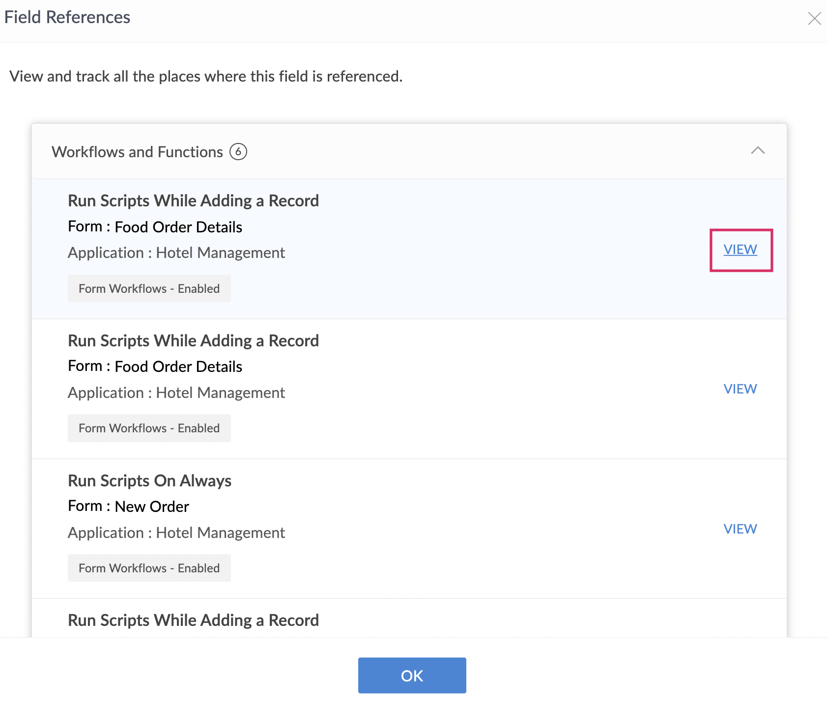 - When you use this field elsewhere, only then will its references will be listed under the Field References section.