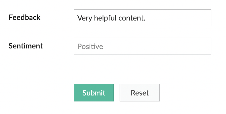The sentiment analysis field will analyze the feedback and display the tone (positive, negative, or neutral) of the content in the live mode of the application.