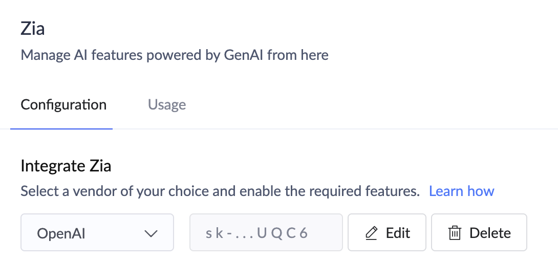 - If you've chosen Zoho GenAI, there is no further configuration required.